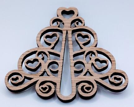 Dekorativ julepynt, udskåret og behandlet på hobbyværksted i Danmark.